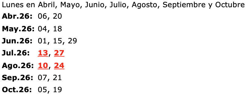 Fechas de salida: