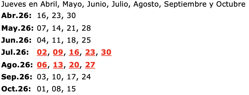 Fechas de salida: