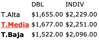 • Precios por persona, sujetos a disponibilidad de fechas y cambios sin previo aviso.