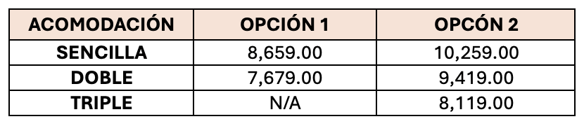 - Precios por persona, sujetos a disponibilidad de fechas y cambios sin previo aviso.