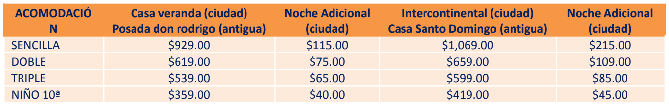 - Precios por persona, sujetos a disponibilidad de fechas y cambios sin previo aviso.