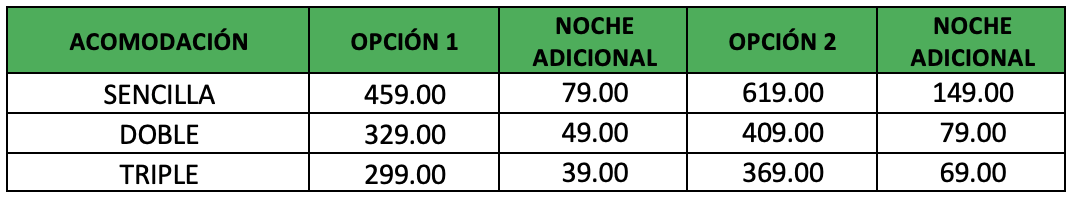 - Precios por persona, sujetos a disponibilidad de fechas y cambios sin previo aviso.