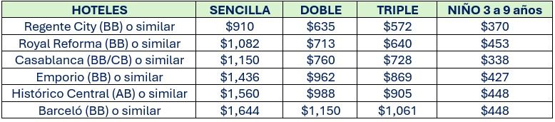 - 6 Noches de alojamiento en la ciudad de México