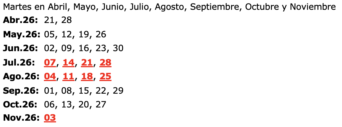 Fechas de Salida: