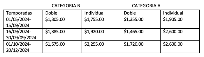 - Precios por persona, sujetos a disponibilidad de fechas y cambios sin previo aviso.